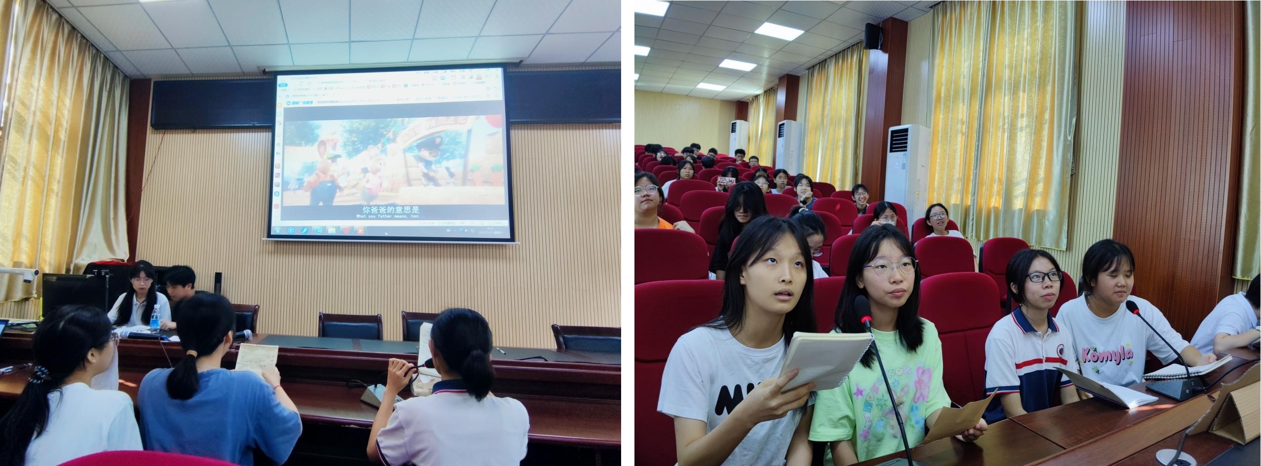了解异国文化知识,体会异国语言魅力,激发同学们对英语的兴趣,还能锻炼同学们的英语口语水平,是什么活动使同学们受益良多呢?——是支教团小老师精心准备的“声入人心”英语配音比赛!赛前小老师们认真挑选影视素材,组织同学们进行练习并耐心纠正发音和语调的问题;同学们也认真准备,努力练习,反复和老师沟通细节,最终精彩的呈现,让大家一起深刻体悟了凝聚在语言、情感、文化灵动交织的配音之美。