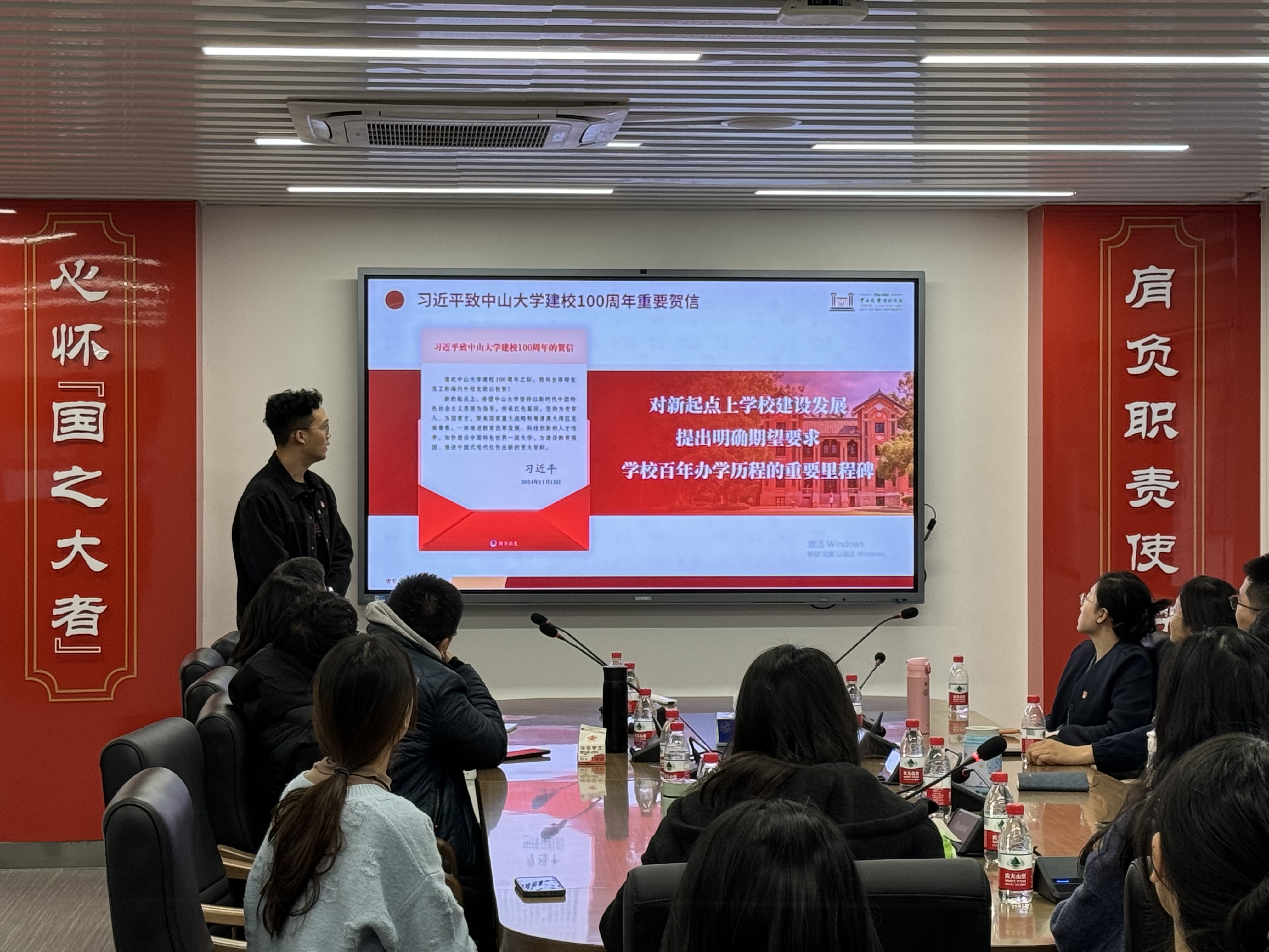 自建校以来的辉煌历史为脉络,带领支部党员回顾百年中大的风雨历程与卓越成就,深刻领悟贺信精神的丰富内涵,感受百年荣光所蕴含的深厚底蕴与时代责任。蔡欢乐同志对支部党员提出了传承中大红色基因、赓续中大百年荣光、在新时代凝心聚力再出发的殷切期望。同时还表达了对师生党支部共建的热切期待。他相信,通过共建合作,能够为党建工作注入新的活力和动力,推动党建工作的创新发展,开创医学统计学系党建引领学科发展的新局面。