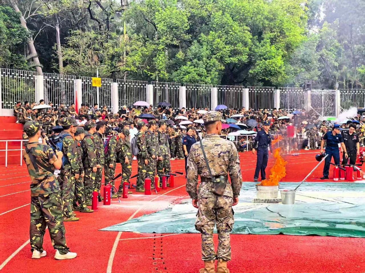 无人机凌空而起,战术突击队精彩出击,匕首操、应急棍、舞狮、武术、教官方阵演示接连上演,场面恢弘、气势如虹。在庄严的表彰声中,军训正式落幕。