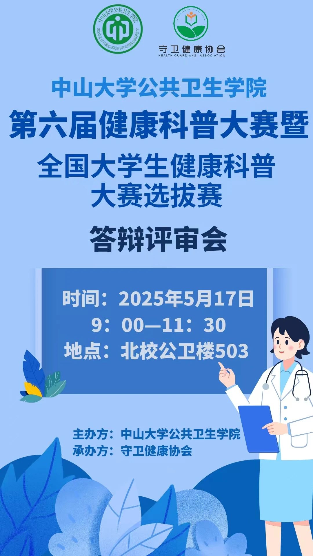 第六届健康科普大赛校内选拔赛旨在通过科普作品展示与答辩,提升大学生健康素养。参赛团队将围绕体重管理、运动安全与健康、科学预防肺炎等主题进行制作作品并现场答辩,由专业评委与大众评委共同评分。优胜作品将代表学校参加全国大学生健康科普大赛。诚邀师生莅临,共襄科普盛宴!