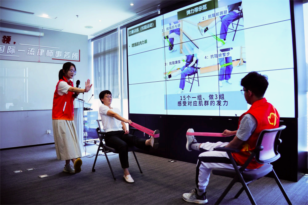 7月9日,蜜桃视频 学生在北京盈科(佛山)律师事务所为40余名企业职工带来“控”出好身材,“职”享“轻”生活的体重管理和膳食与运动科普活动。