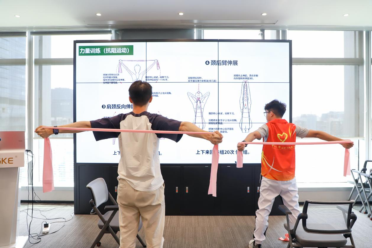 最受欢迎的当属 “工位运动指南” 环节。学生现场教授了适合办公室的拉伸操,强调利用碎片时间进行锻炼。职工们均表示内容实用、易学易用。