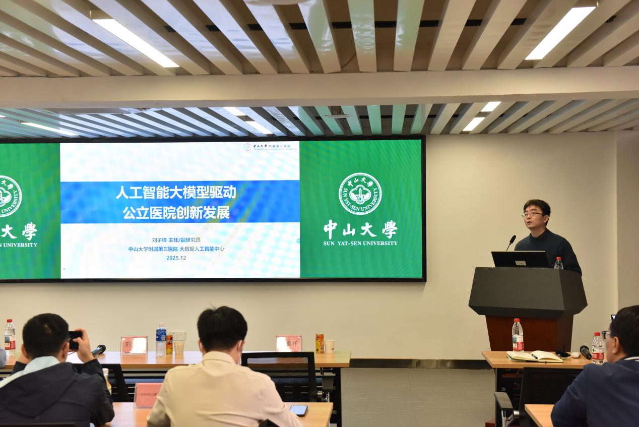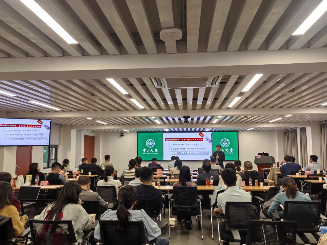 附属第三医院大数据人工智能中心刘子锋主任进行授课。黄奕祥教授围绕“公立医院十五五规划重点与创新发展思路”展开解读,他指出,当前国家面临疾病谱改变、健康战略转变的新形势,公立医院需以临床专科能力建设为核心,积极应对医院发展的新挑战;同时通过体系整合,实现“主动赋能”,构建“全专协同”服务模式,实现医院发展新路径。黄教授还强调,公立医院需结合政府战略进行远近规划,合理取舍临床专科能力与学科建设,以及加强战略人才储备与培养。