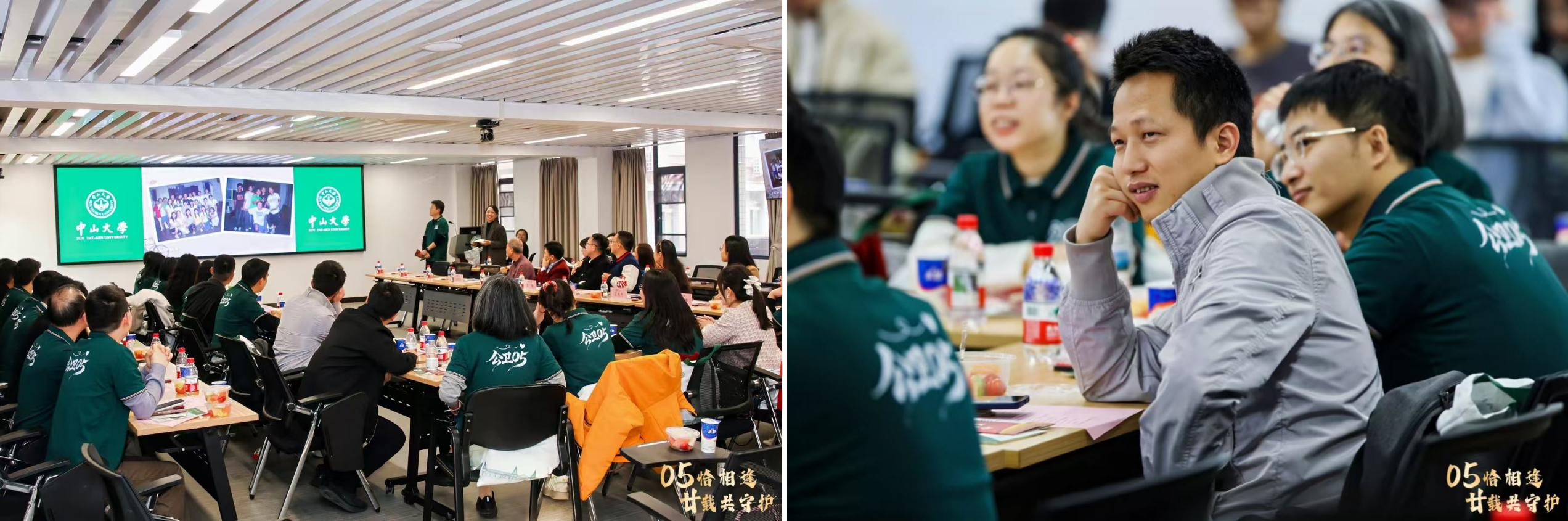 503会议室,正式开启座谈交流。会议室内,屏幕上循环播放着校友们当年的老照片与影像片段,青涩的面孔、熟悉的场景,瞬间将大家带回二十年前的求学时光,现场洋溢着温暖而怀旧的气氛。