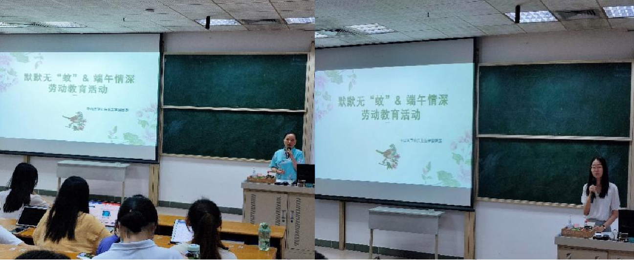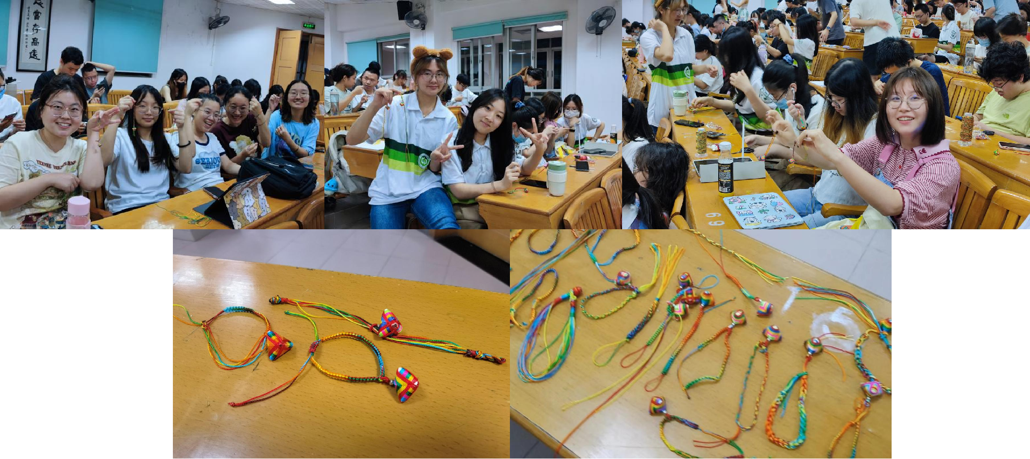发挥专业优势,组织开展了“默默无蚊,端午情深”劳动教育活动,将驱蚊虫、庆端午与劳动教育相结合,在南、北两个校园以不同的形式展开:北校园21级和20级学生编织五彩绳,南校园22级学生缝制驱蚊包。最后将作品赠予院内老师,共同庆祝端午。