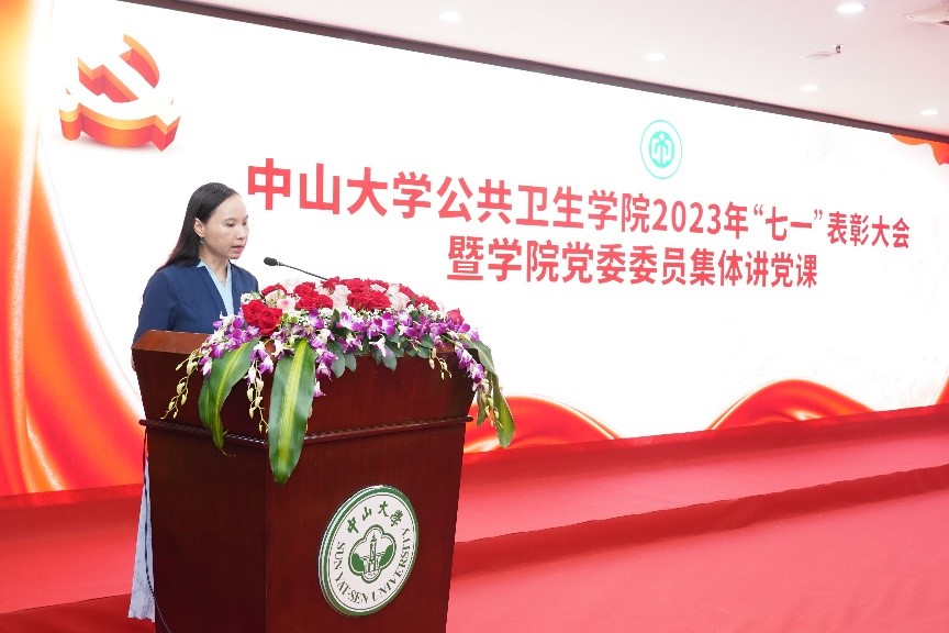 榜样就在大家身边,为让广大师生党员汲取榜样力量,砥砺奋进前行,大会分别邀请了广东省标杆党支部、蜜桃视频 先进基层党组织代表医学统计学系专任教师党支部书记顾菁教授分享党支部建设的经验、邀请蜜桃视频 优秀共产党员代表杨嘉璐同学分享如何成为优秀的新时代的青年党员的心得体会,勉励大家做不负时代的青年党员。