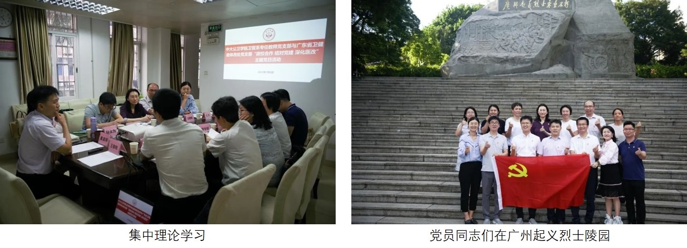 7月6日,卫生管理学系专任教师党支部与结对共建党支部——广东省卫生健康委员会体改处党支部联合开展“政校合作 结对党建 深化医改”主题党日活动。卫生管理学系专任教师党支部组织委员王欣副教授领学《习近平新时代中国特色社会主义思想专题摘编》;卫生管理学系专任教师党支部书记黄奕祥教授围绕卫生管理学系的发展历程、师资力量、人才培养、科学研究、社会服务和对外交流合作等进行详细介绍。广东省卫健委体改处党支部组织委员蔡秋茂副处长分享了体改处2023年“六个一”工作任务及安排。活动最后结对党支部所有党员同志们前往广州起义烈士陵园,重温入党誓词,缅怀革命先烈、铭记历史、致敬英雄、牢记公卫人担当。