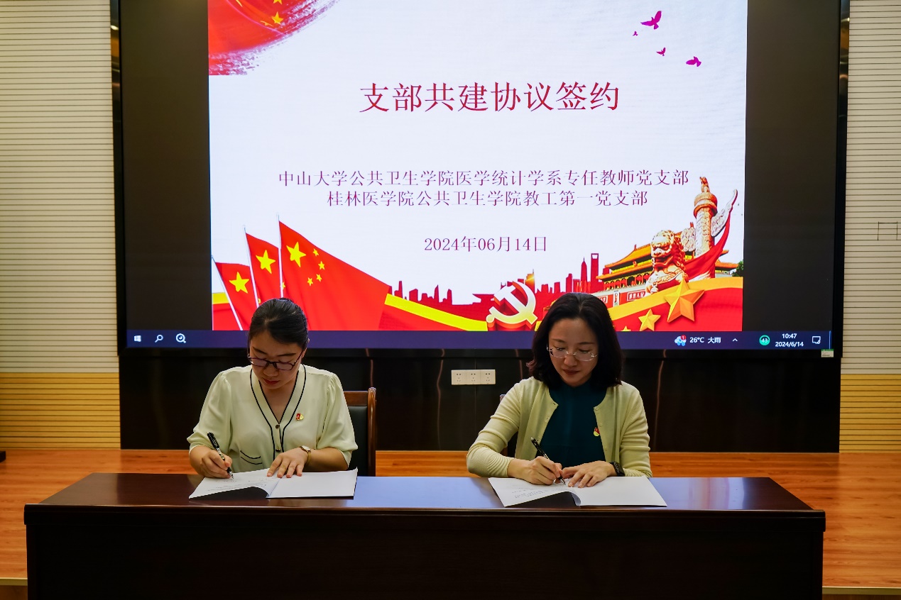 为进一步推进党纪学习教育走深走实,双方党支部签署了共建合作协议。双方一致同意以教育部“慕课西行2.0”为抓手,发挥党支部的战斗堡垒作用和党员的先锋模范作用,落实与桂林医学院高水平蜜桃视频 建设“一拖一”建设,将《医学统计学》慕课西部行工作在桂林医学院蜜桃视频 落实落地,做出品牌,为西部教育振兴贡献力量。