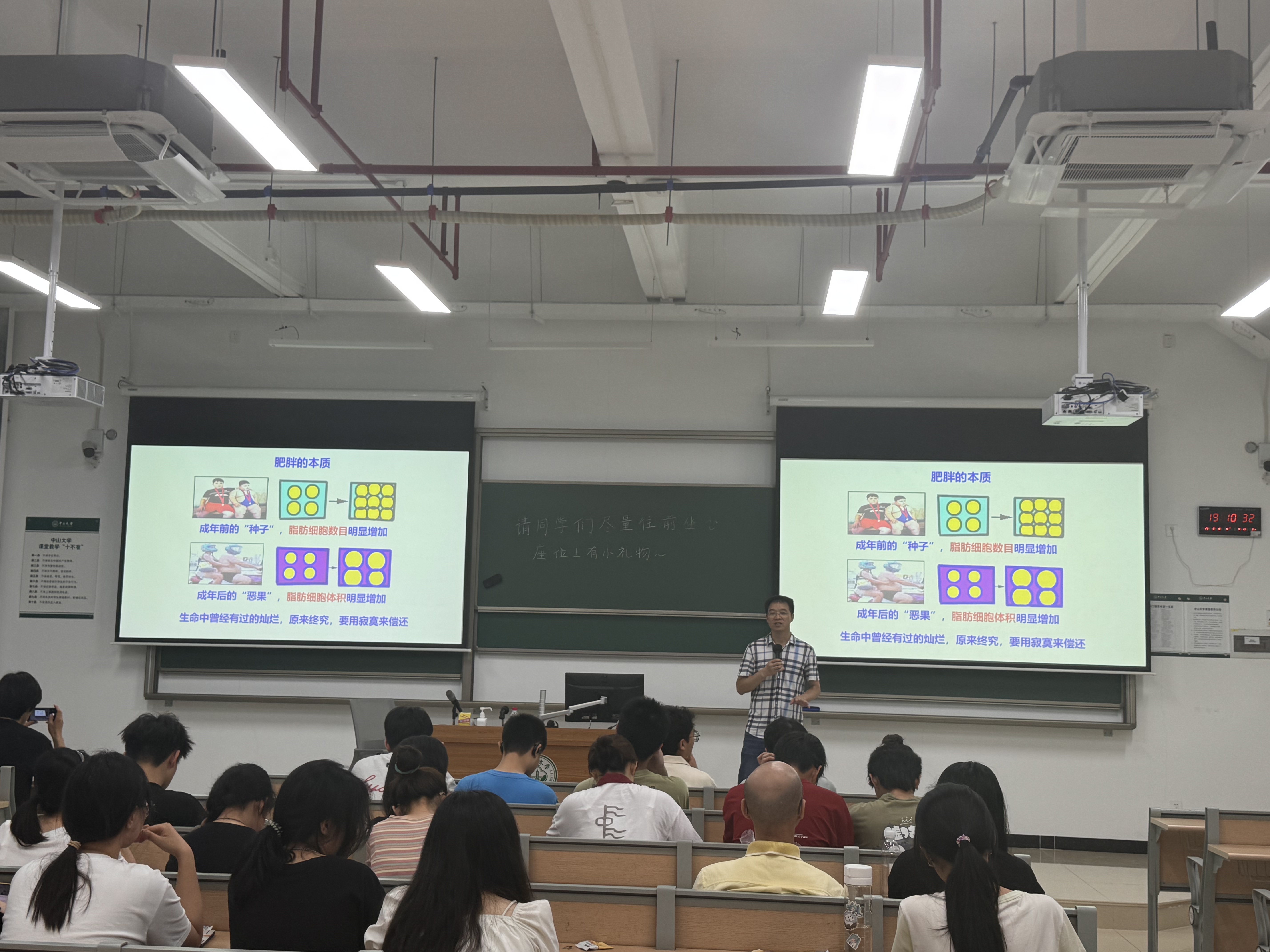 营养学系副主任王冬亮教授作为主讲专家,开展了主题为《不饿也能瘦》的专题讲座。讲座中,王冬亮教授一针见血地点明了肥胖的本质,以风趣的语言带领同学们了解了肥胖的各方成因,并提供了细致全面的减脂增肌的科学方法,为同学们控制体重的道路指明了方向。