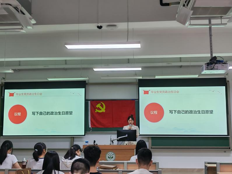 本科生第一和第二党支部组织开展毕业季传统活动,为2025届毕业生党员集体过政治生日,带领党员们回顾在支部学习成长的点滴,重温入党誓词,引导毕业生党员继续在未来的学习工作中永葆廉洁本色,发挥先锋模范作用。党支部书记蓝丹红老师、2020级毕业生党员参加了会议。会议由支部副书记卫怡廷主持。