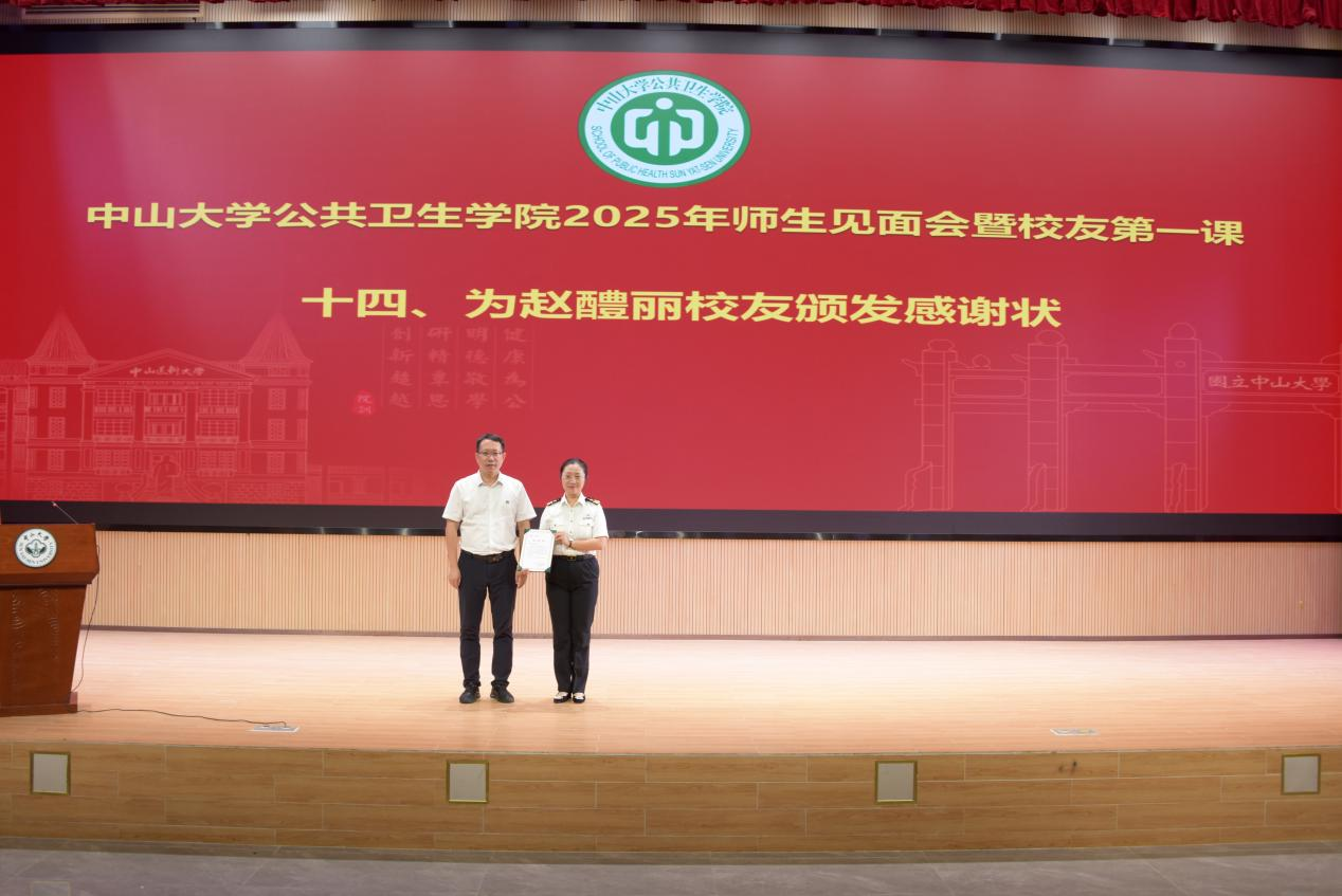 夏敏院长为赵醴丽校友颁发感谢状