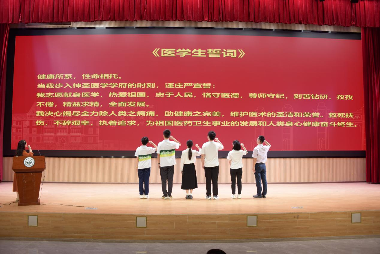 医学誓词,立志预防医学。在王燕芳副书记的带领下,全体医科新生进行《医学生誓词》宣誓。“健康所系,性命相托”,全体医学生必将牢记使命,脚踏实地,砥砺前行,为祖国医药卫生事业的发展和人类身心健康奋斗终生。