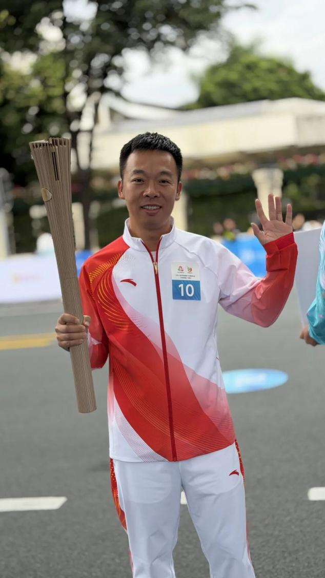 火炬接力完成后,他仍沉浸在热烈氛围中:“非常高兴,希望能再跑长一点,再跑久一点!现场的气氛也非常好,我们的街坊市民也一直给我加油鼓劲,感到非常高兴!火炬点燃的瞬间,我整个人都燃起来了。广州本就是一座热爱体育、热爱健康、奋发向上、充满朝气活力的城市,能在这里传递火炬,意义非凡。”