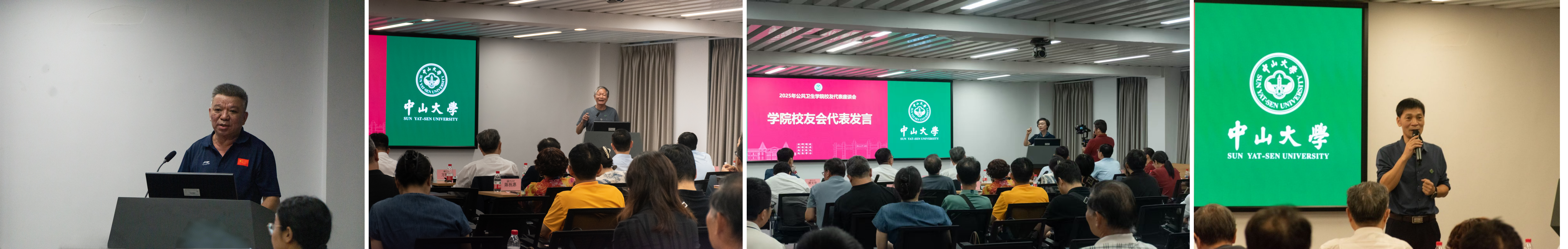 学院校友会代表原医学统计与流行病学系主任方积乾教授,原院长凌文华教授,原党委副书记张继芳副教授,原院长郝元涛教授,原副院长刘移民教授,原医学统计与流行病学系副主任骆福添教授,原卫生毒理学系杨杏芬教授,原党委副书记杨德胜老师激情满怀先后发言,他们深切怀念在学院学习、工作的美好时光,感恩学院培育,号召凝聚力量,为学院发展添砖加瓦,续写深情厚谊。